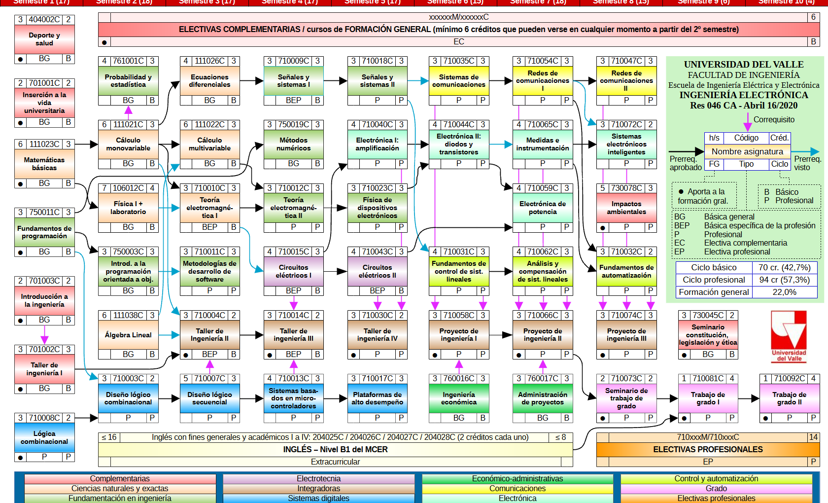 A continuación se muestra la estructura curricular que aplica a los estudiantes que ingresaron hasta el primer semestre de 2021 y la que fue aprobada por el Consejo Académico para los estudiantes que ingresen al Programa de Ingeniería Electrónica de la Universidad del Valle a partir del segundo semestre de 2021.